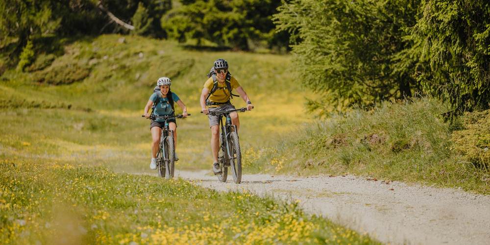 Schnappen Sie sich gleich nach einem reichhaltigen Frühstück Ihr Mountainbike oder ein Leih-Mountainbikes aus der ebenerdigen Bikegarage, schwingen Sie sich auf den Sattel und radeln Sie los – mit Rückenwind der Freiheit entgegen. Zum Beispiel zur Fane Alm, Südtirols schönstem Almdorf. Haben Sie genug Schmalz für eine echte Powertour? Dann wagen Sie sich an die Peitlerkofelrunde –